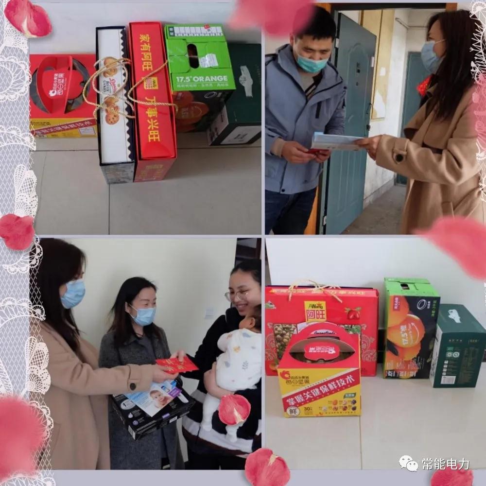 3月19日上午,常州市常能电力工程咨询有限公司总经理夫人周晴晴携综合部经理谢坚、变电部经理黄立波、技经部经理戴晓红等一行人先后为妻子都刚刚生育不久的瞿阳同志和吴江枫同志送去公司的关怀和慰问。